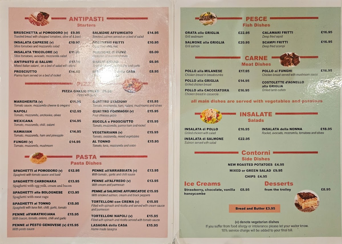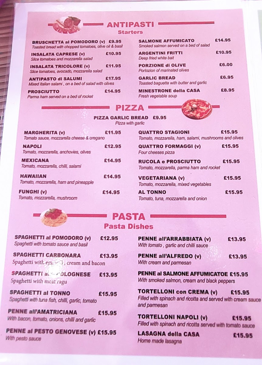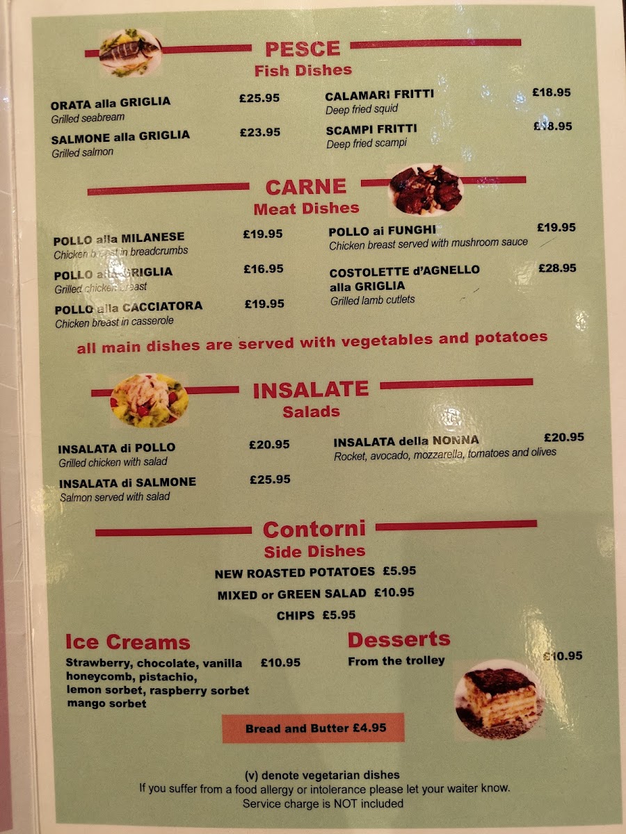 Start your culinary journey with their array of pasta dishes, including the classic Spaghetti al Pomodoro (£11.95) or the rich and creamy Spaghetti Carbonara (£12.95). For meat lovers, tantalizing offerings like Pollo alla Milanese (£15.95) and Costolette d' Angelo al Griglia (£22.95) will surely impress.